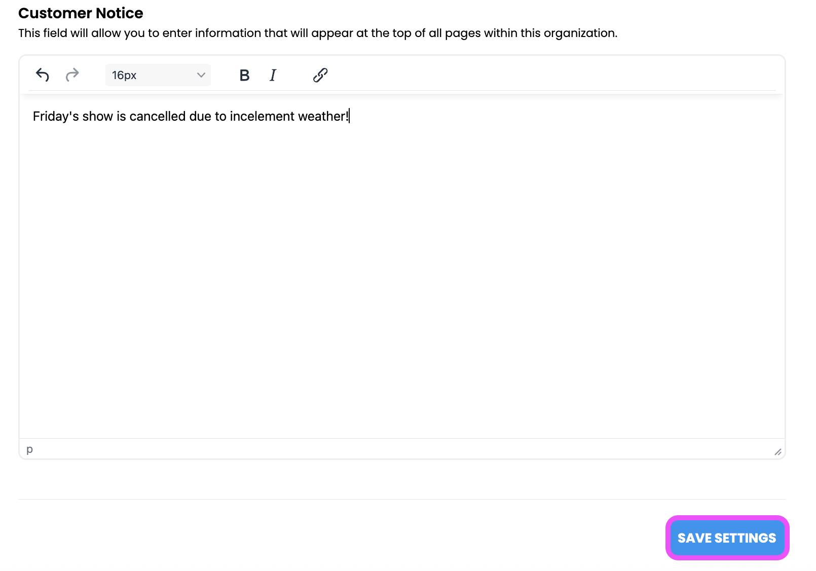 - You have specific instructions for your patrons regarding a presale, codes, parking, etc.