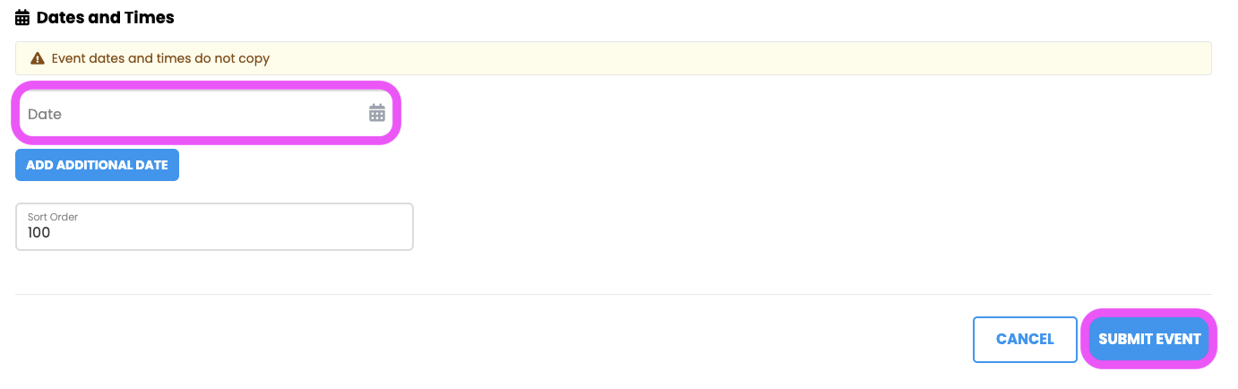 c. Enter new Dates and Times.