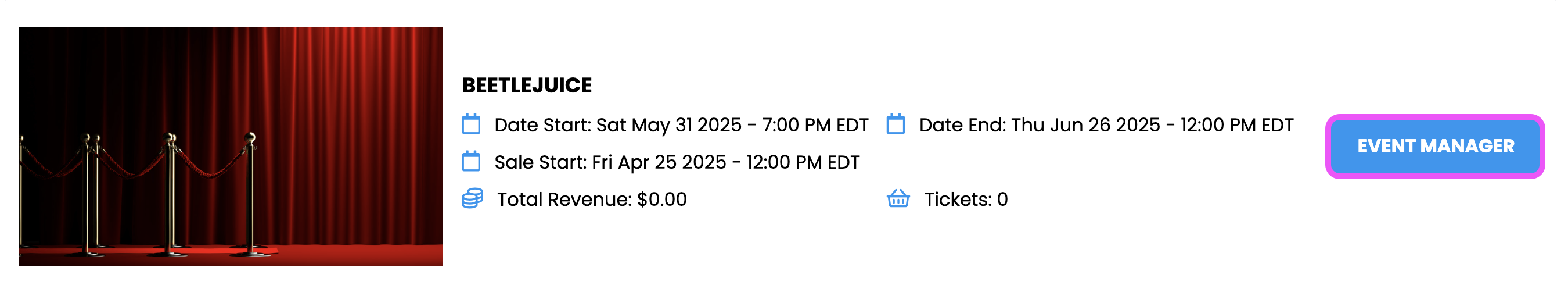 3. Click EVENT MANAGER next to the event.
