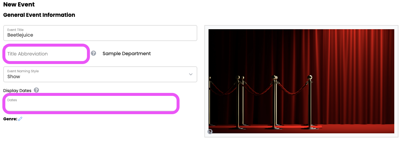 In the GENERAL EVENT INFORMATION section: