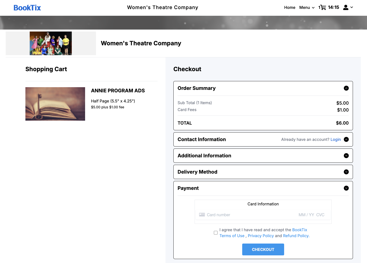 ⏱︎ 2 minutes 1. Go to the customer site of the organization for which you are purchasing (for example, demo.booktix.com). 2. Log in to your existing account, create a login account, or if the organization has it as an option, you can proceed with a ...