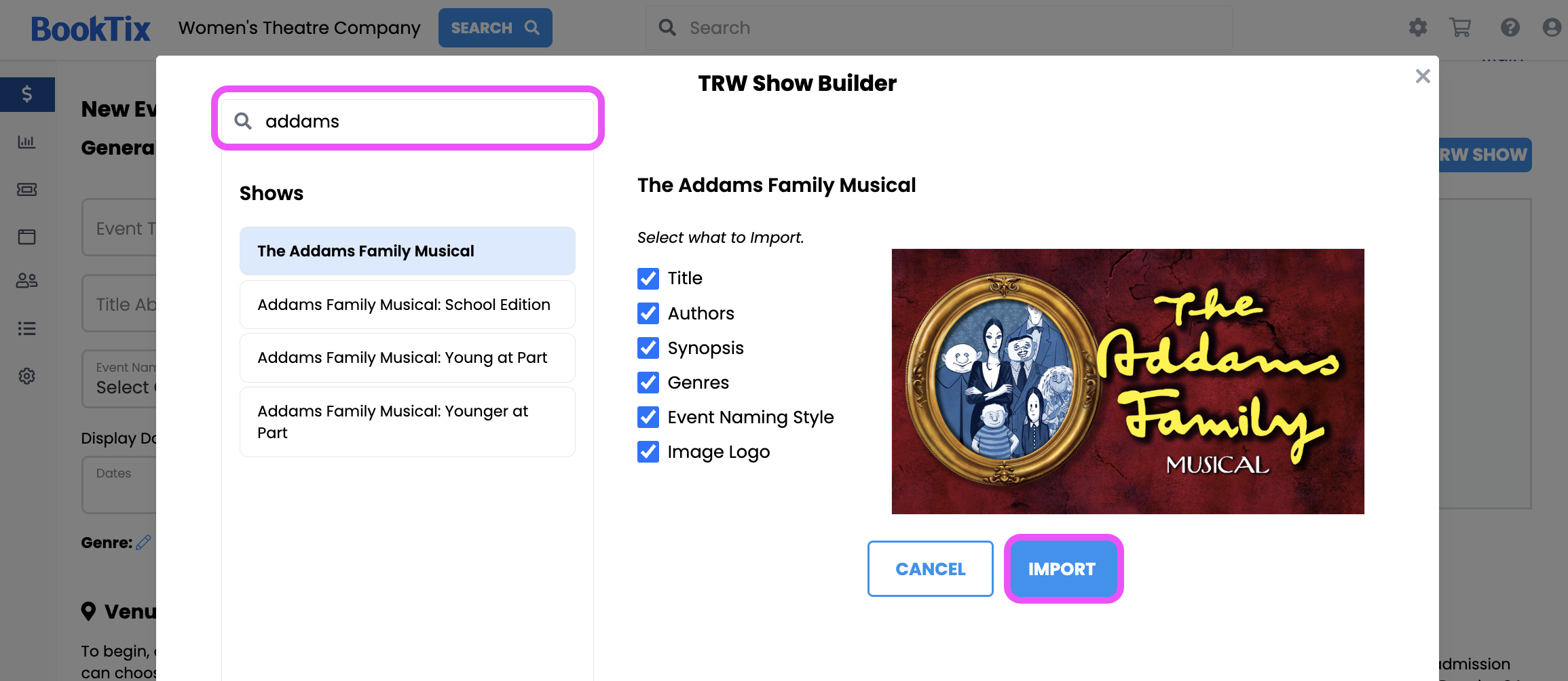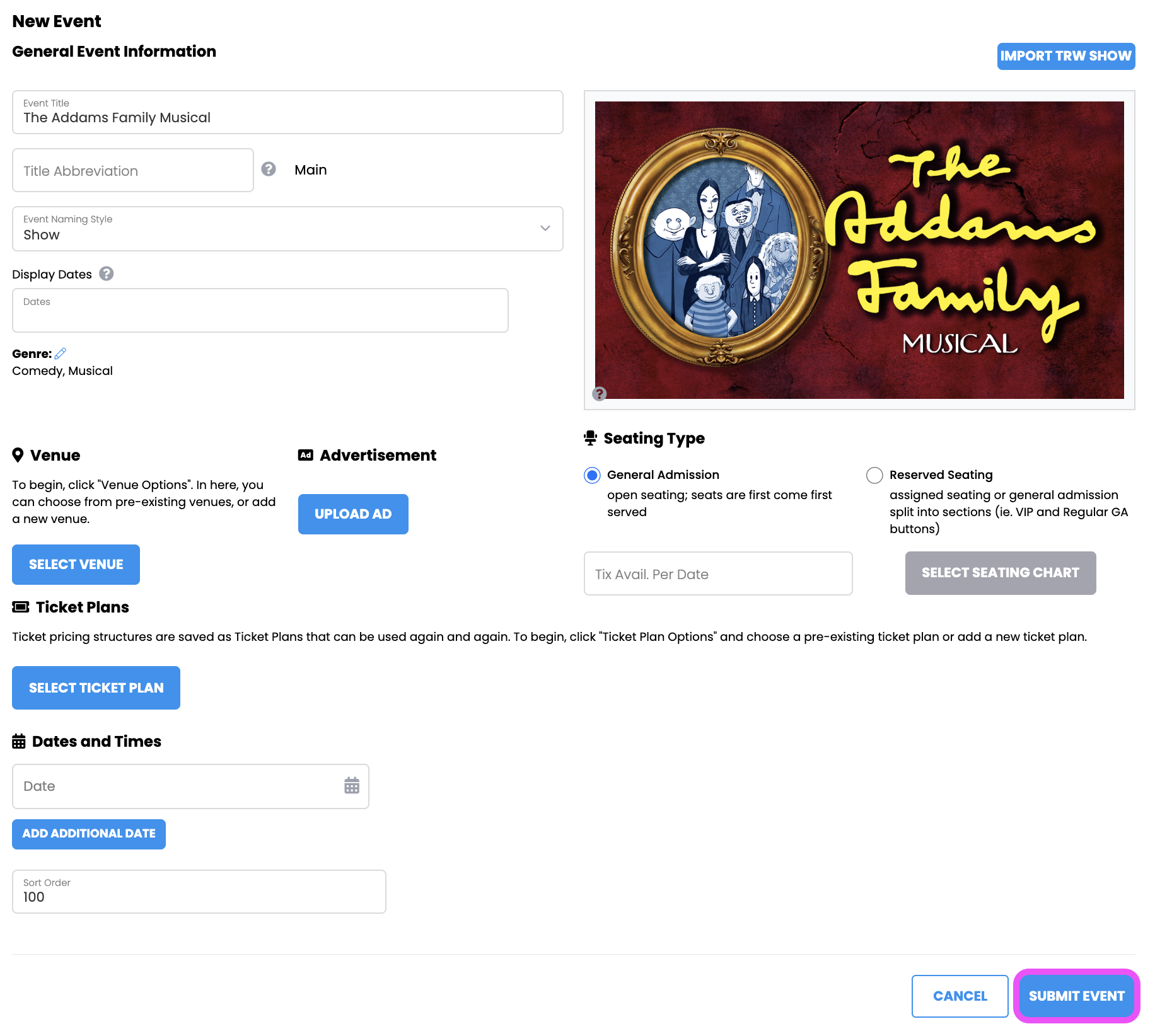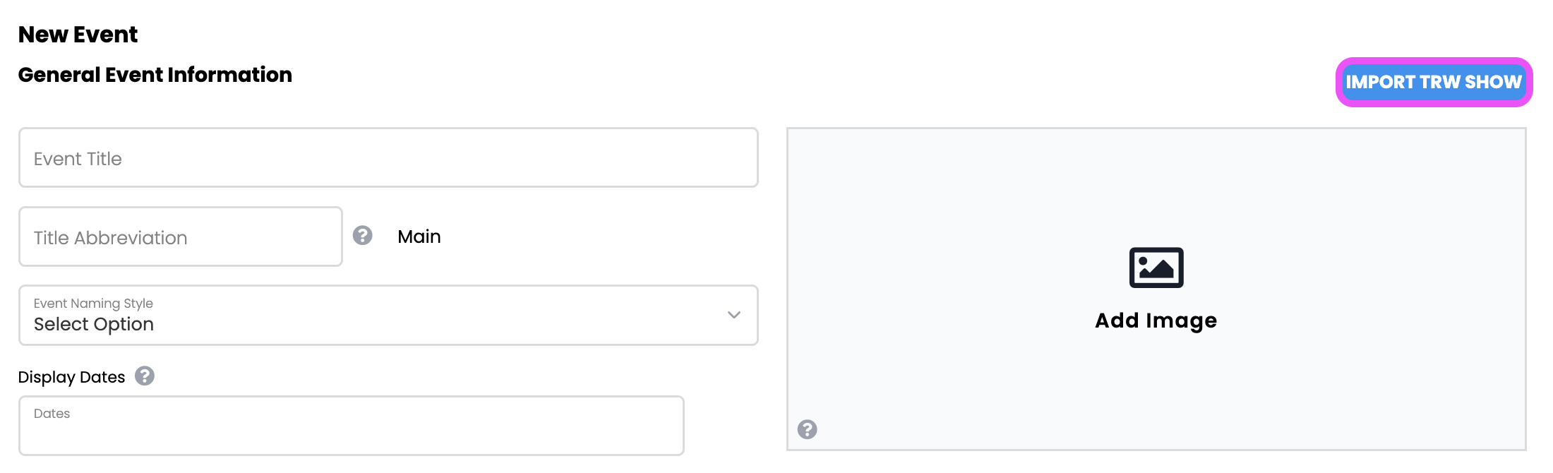 The TRW Show Builder lets you autofill information from TRW for your event. In order to sell tickets using the TRW Show Builder, you will need to set up a new event.