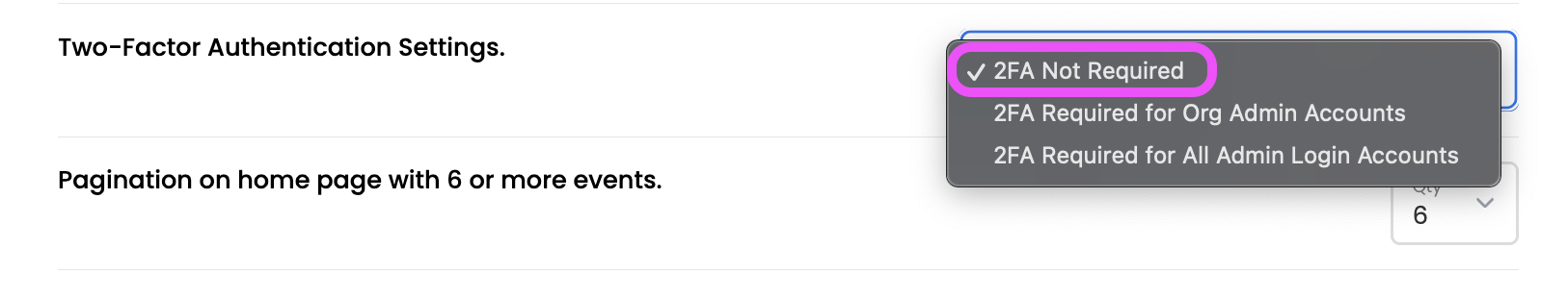 To turn off 2FA requirement, simply switch back to the 2FA Not Required option.