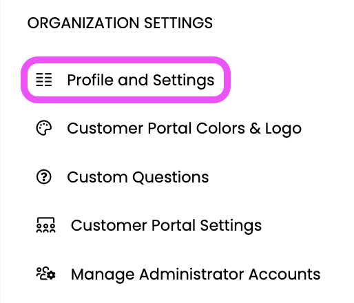 - From your Organization Dashboard, navigate to your left menu under Organization Settings → Profile & Settings