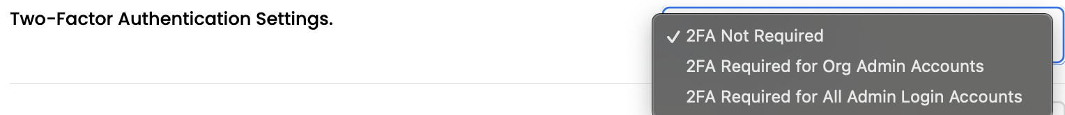 This option will require only Org Admins to use 2FA to login; it is optional for all other admin accounts.