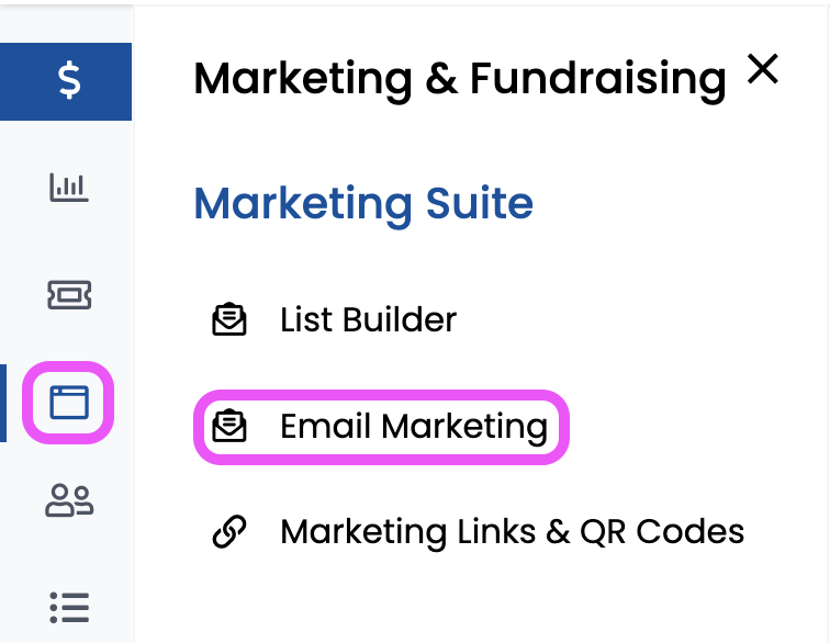 2. On the left side menu, go to Marketing and Fundraising → EMAIL MARKETING.
