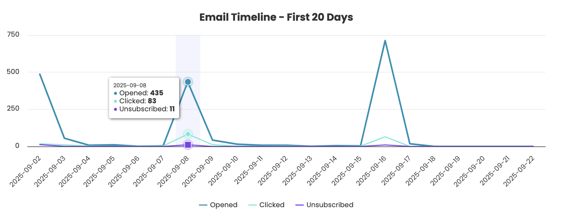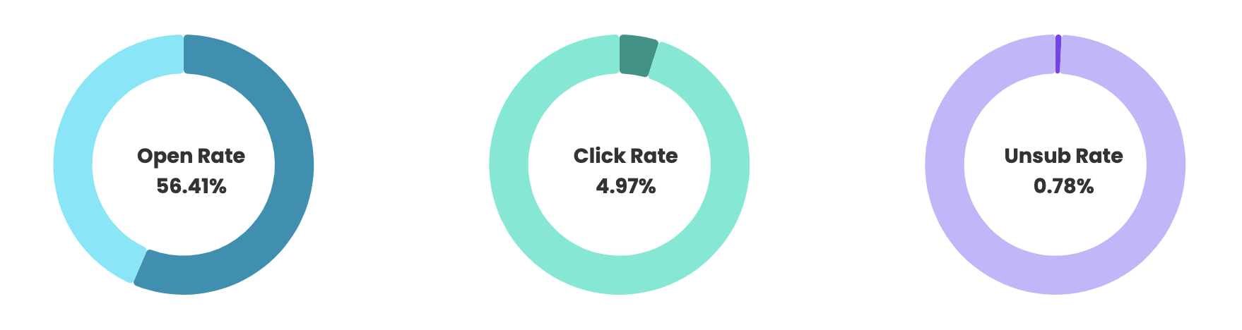 See the statistics of your email marketing campaign, including opens, clicks, unsubscribes, and bounces.