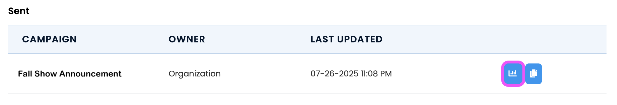 3. Scroll down to the SENT header, and click the graph icon next to the campaign.