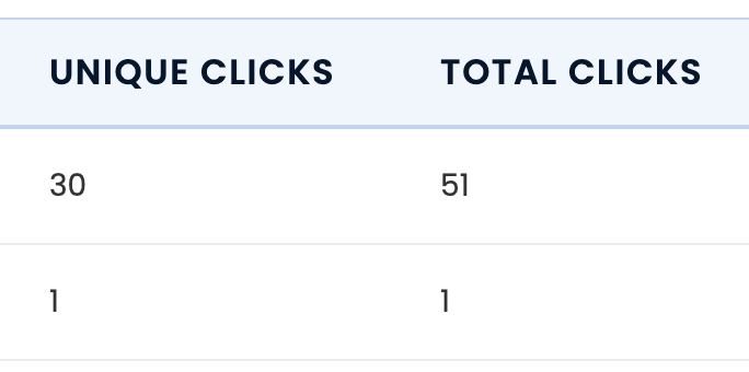 Underneath the graph, there's a table that you can see the URLs, along with their Unique and Total clicks.