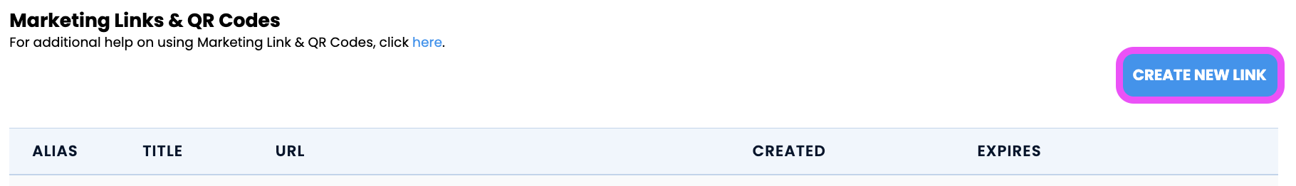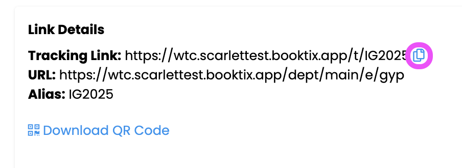Once the link is created, you can copy your newly created link using the COPY icon next to your link URL: