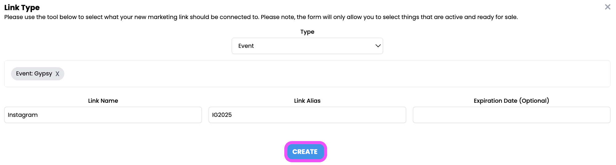 Marketing Links & QR Codes let you create trackable links tied directly to your events, items, packages, donations, or sponsorships, and give you insights into how your audience interacts with your promotions. Below is a step-by-step guide to getting them set up in your account.
