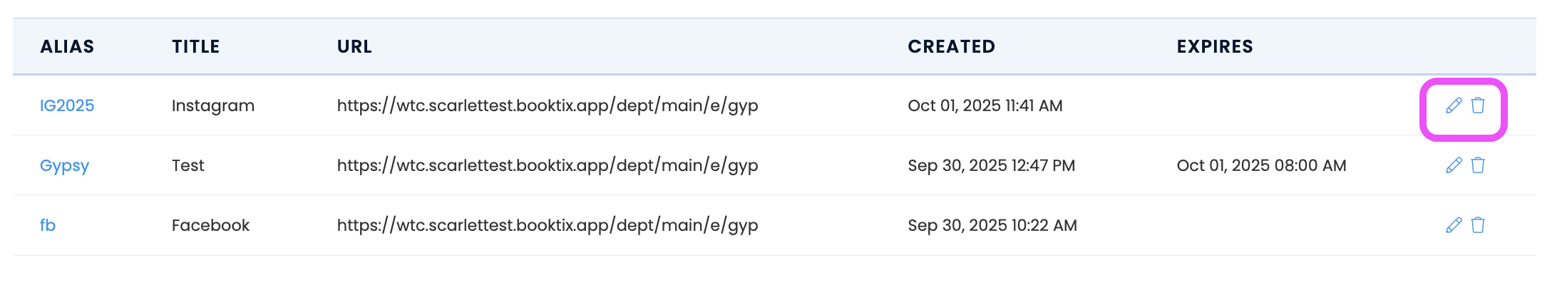 If you need to Edit or Delete your link, use the EDIT or TRASH icon on the far right in the link list: